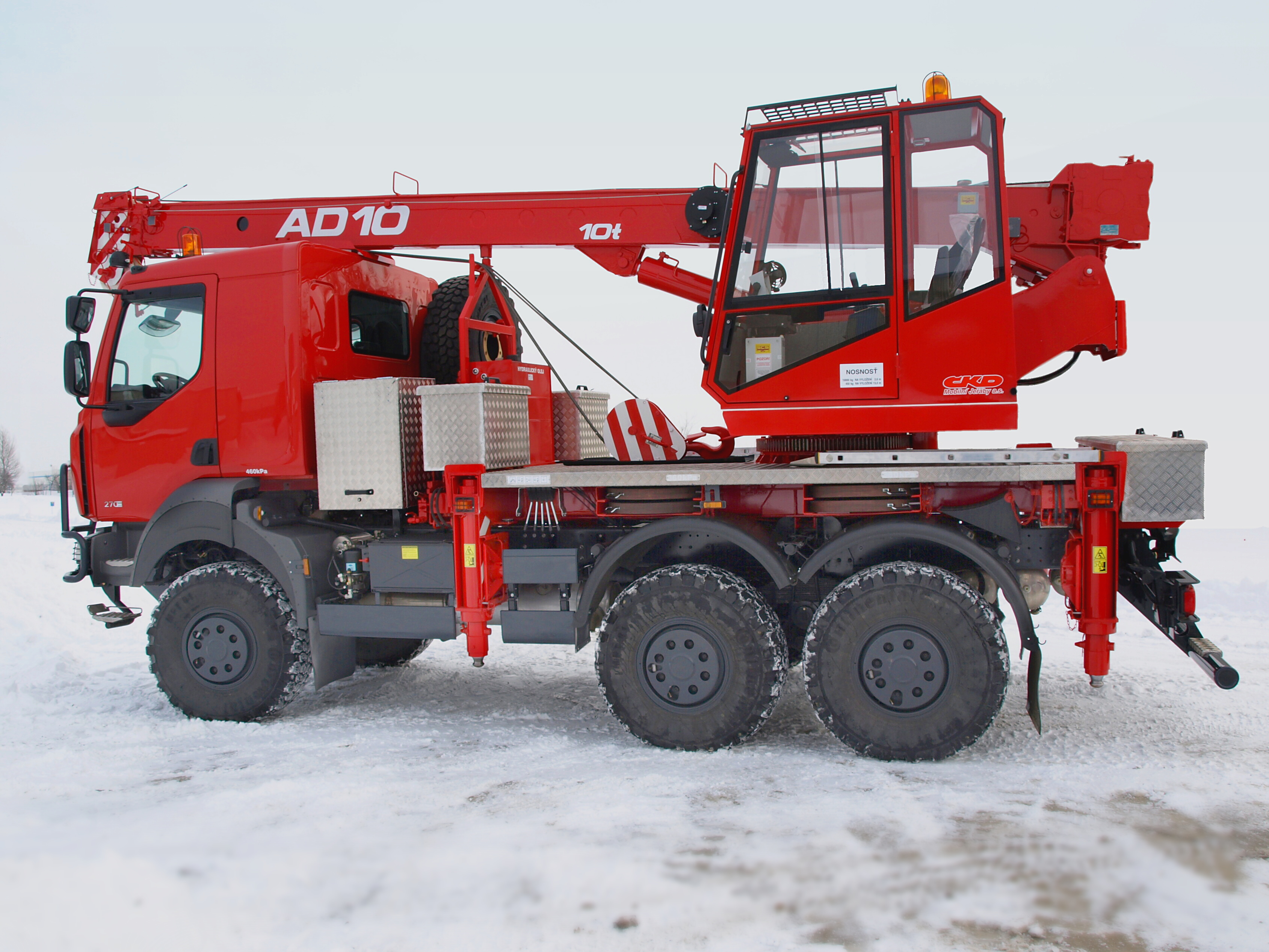 Fotografie + English: New Mobile Crane AD10 on superstructure TATRA 810 with telescopic outrigers manufactured by CKD Mobilni Jeraby a.s., Slany, Czech Republik