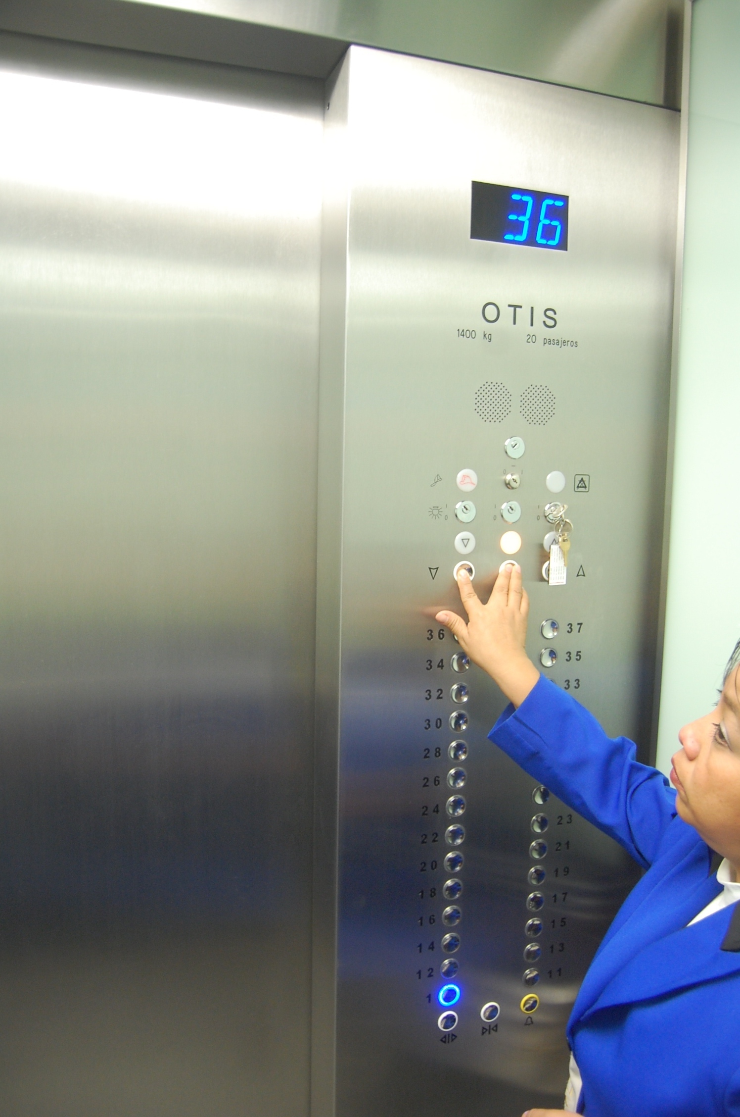 Fotografie + English: Inside the elevator leading to the top floor of the Torre Latinoamericana. Taken by Chris Kanaan