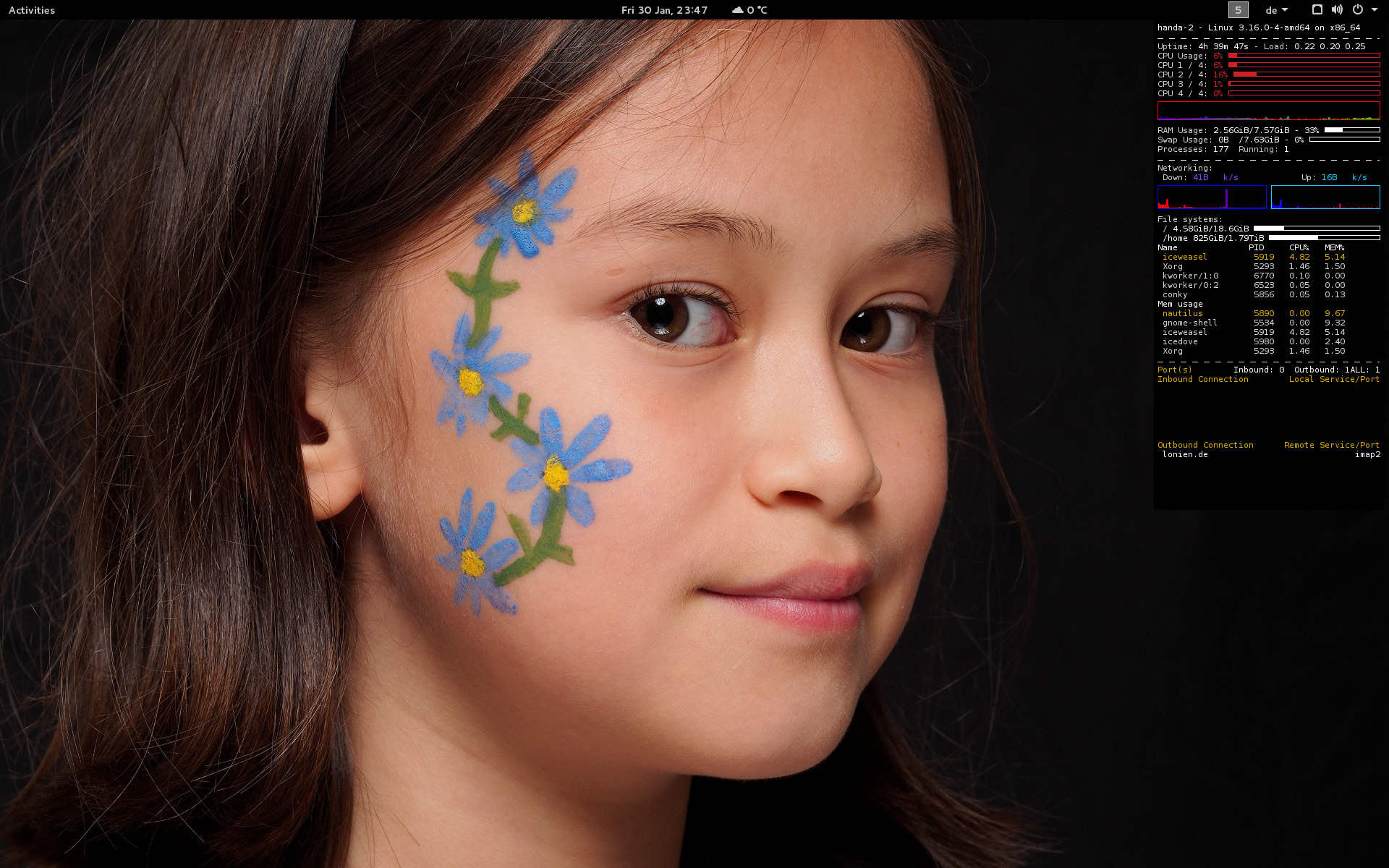Snímek obrazovky + English: Desktop wallpaper art for my new Debian "Jessie" installation (January 30, 2015).