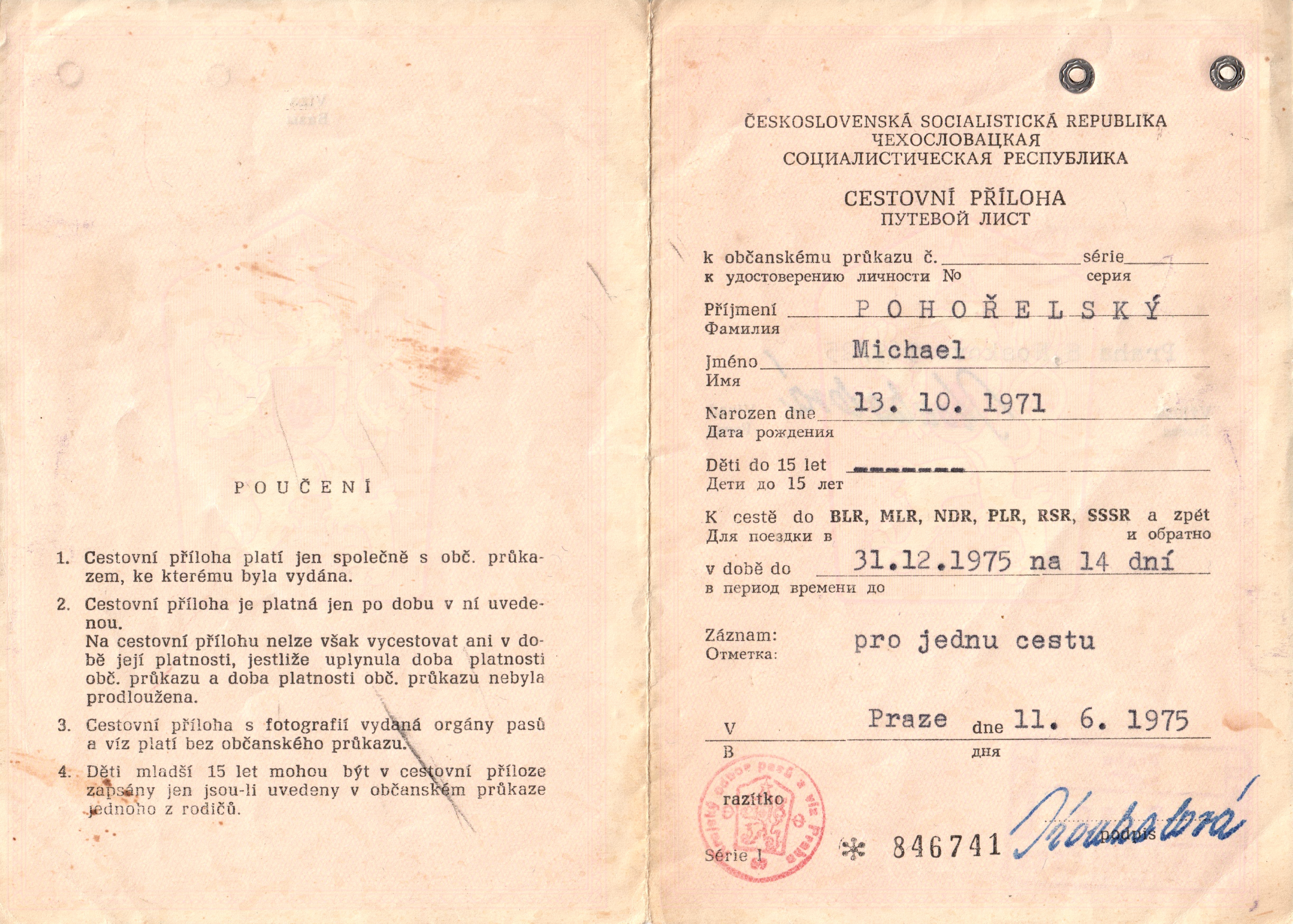 Fotografie + Czech: Moje výjezdní cestovní doložka pro absolutně první cestu letadlem do Bulharska...ve věku 3 let