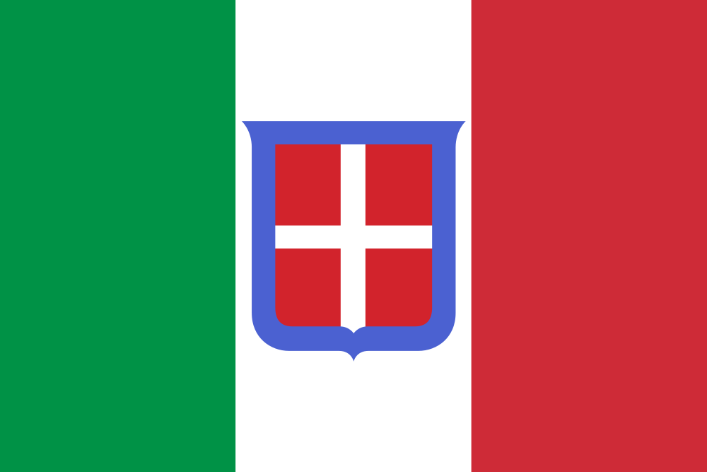 Oficiální vlajka + Flag of the Kingdom of Italy (1861-1946) + pochází z Wikimedia Commons, kde má status - Creative Commons Attribution-Share Alike 2.5 Generic (autor: F l a n k e r).