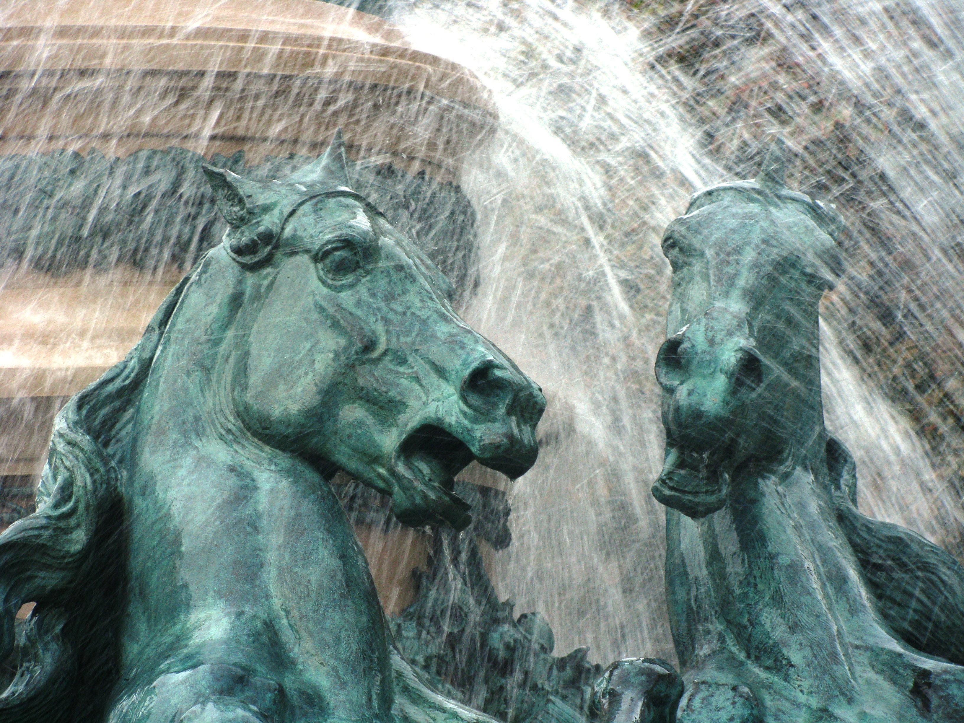 - Čeština: Dva koně na Fontáně Čtyř světových stran v Paříži.