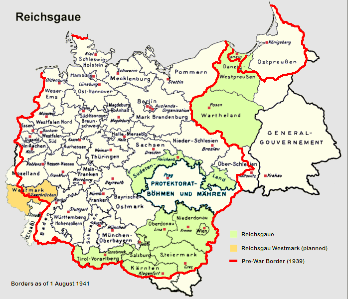 - Deutsch: Reichsgaue und Generalgouvernement im Jahre 1941.