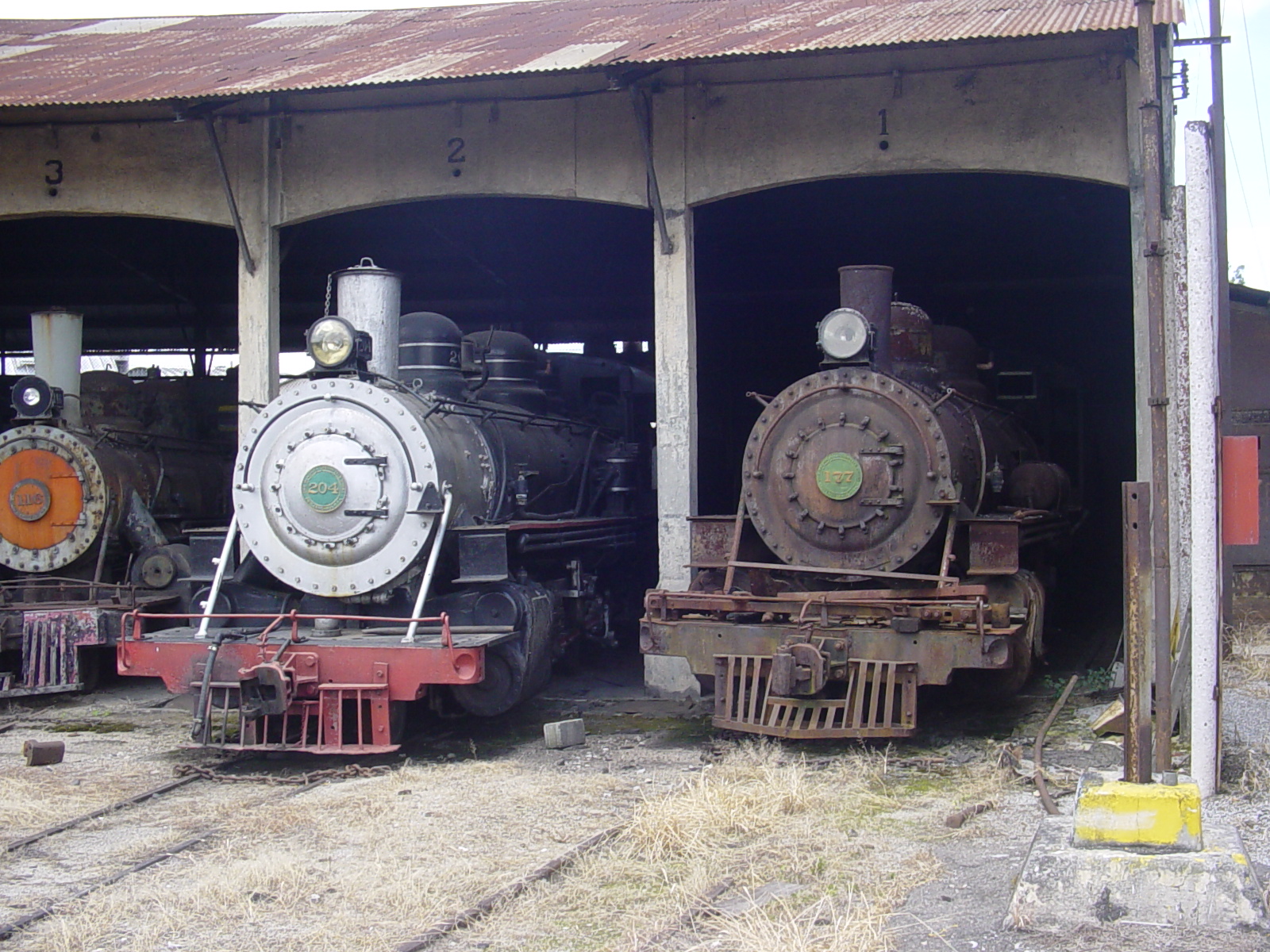 Fotografie + Description: Depot at main station in Guatemala City contains steam engines, inherited from previous owners (IRCA, FEGUA). They are occasionally used on nostalgic tourist trains.