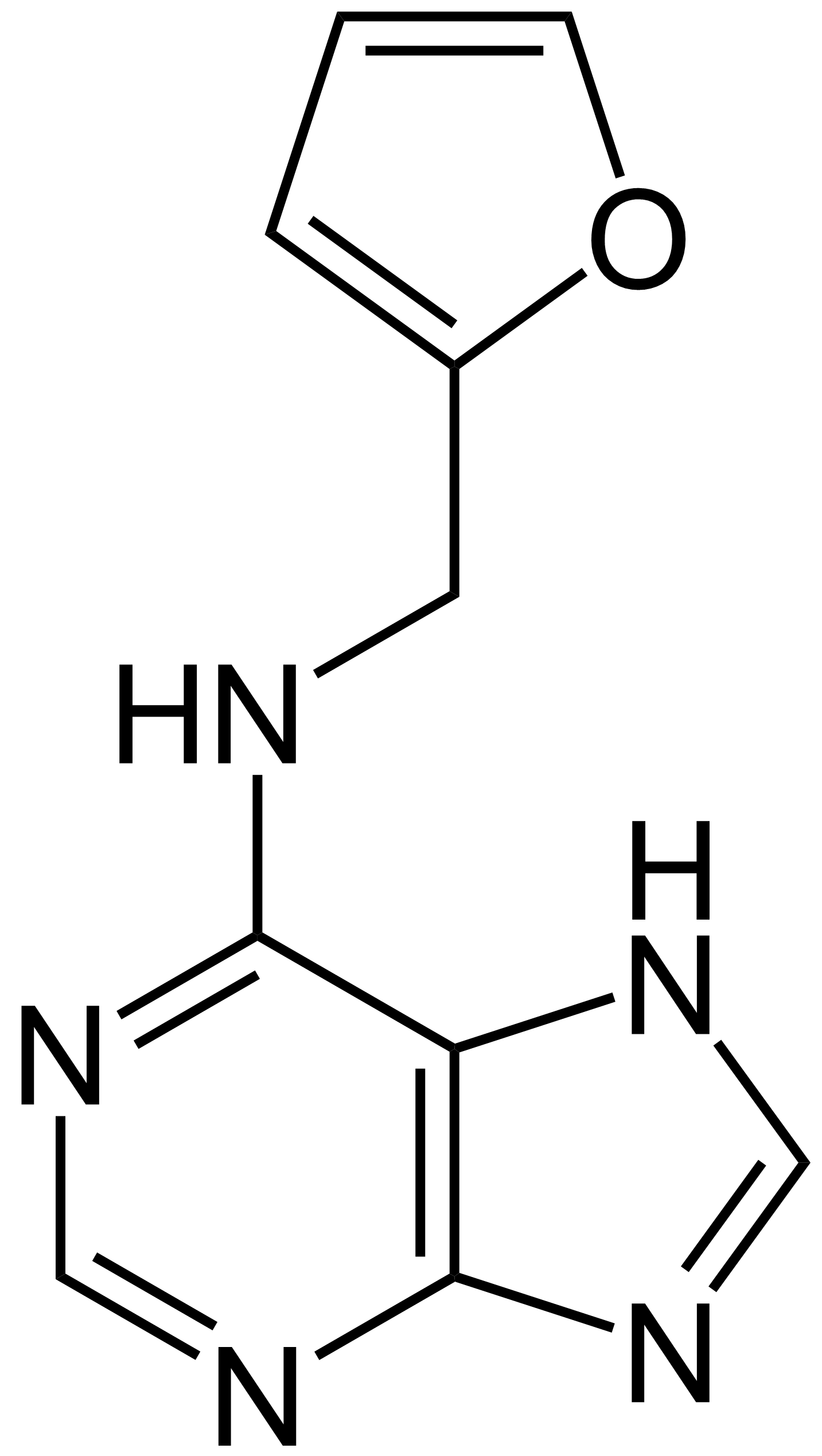 Vzorec + Description: Chemical structure of kinetin, a plant growth hormone.