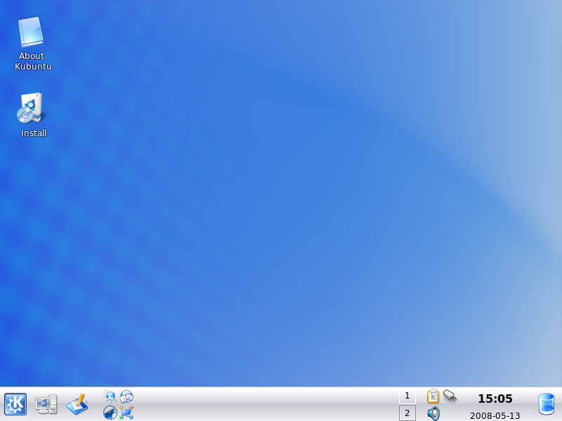 Snímek + Description: Screenshot of the Live CD of Kubuntu 8.04