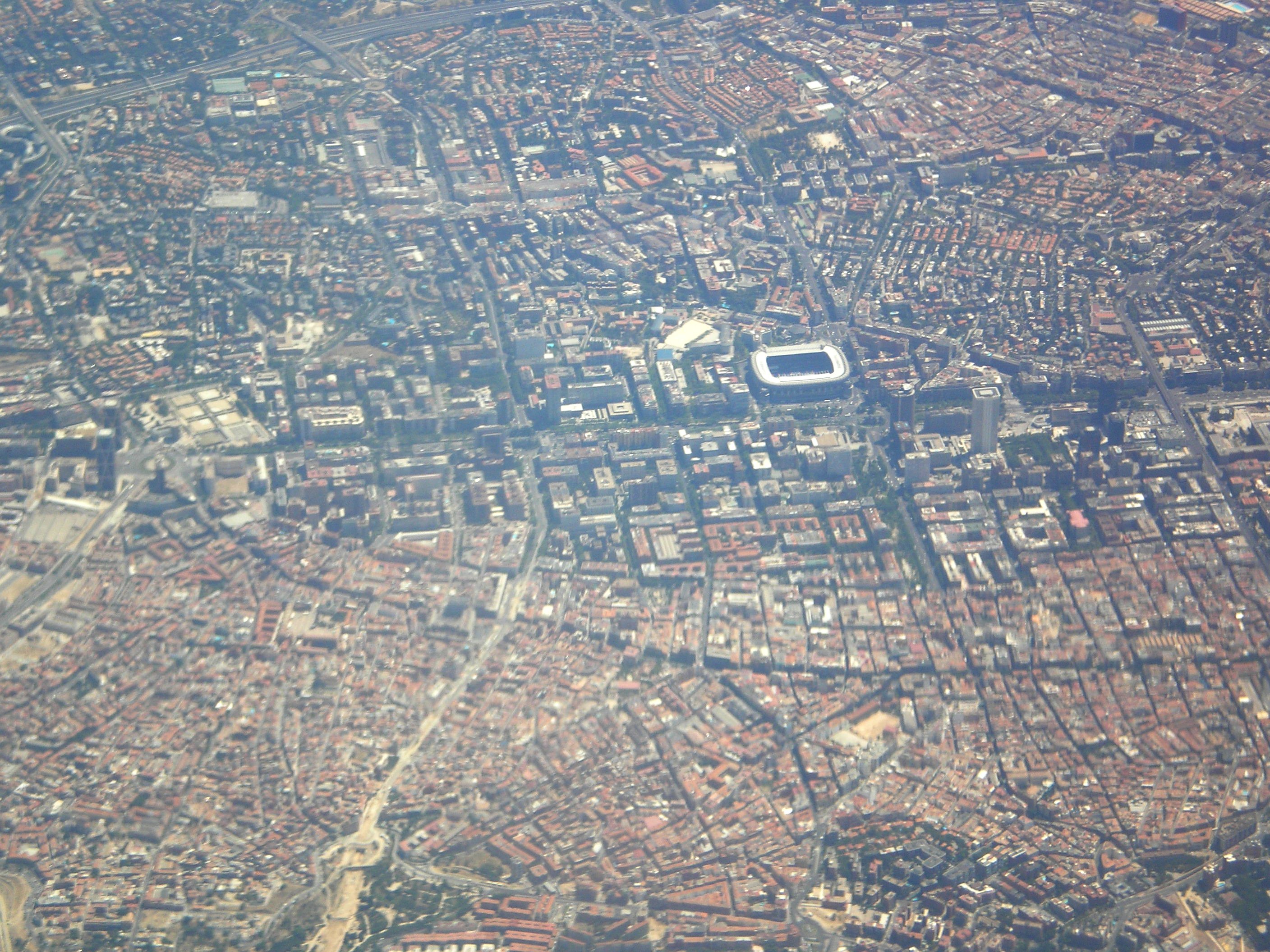 Fotografie + English: Aerial view of Madrid. Mainly, Paseo de la Castellana.