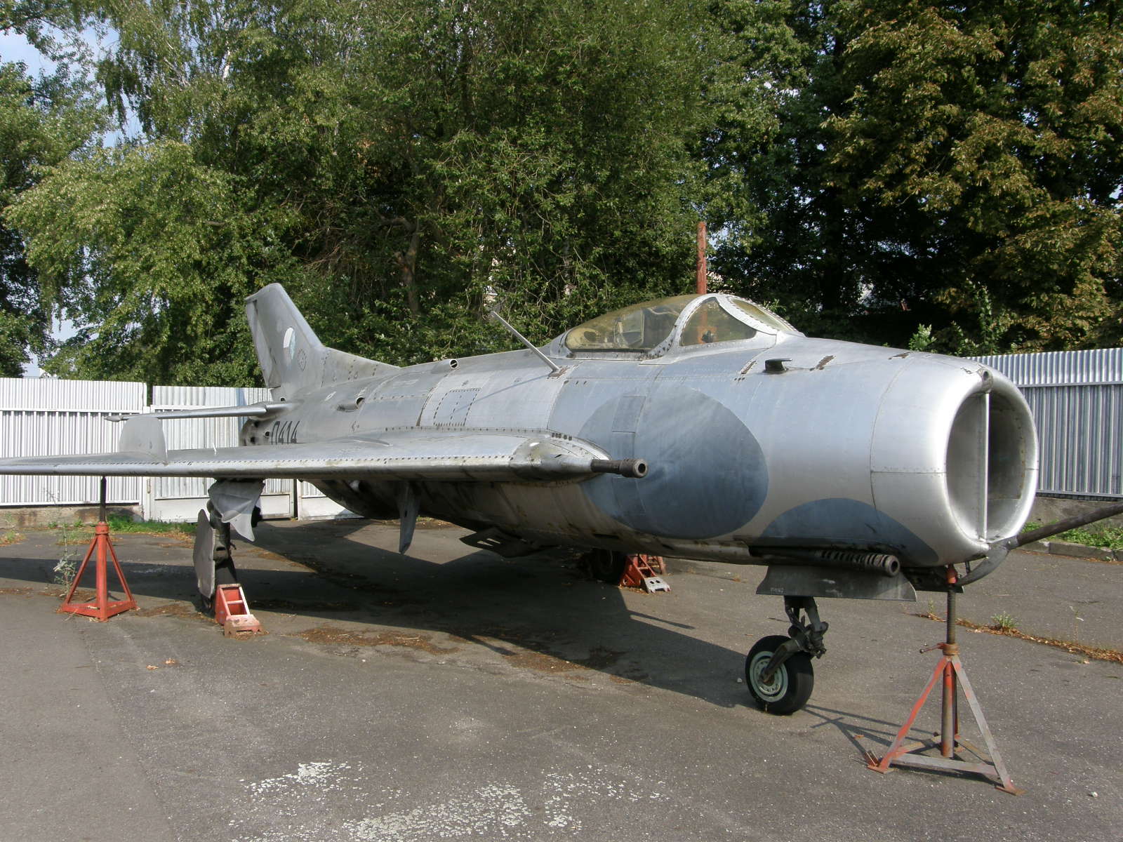 Until 1961 built this factory 104 aircrafts. This 0414 was manufactured in May 1961 - MiG-19S (NATO: "Farmer-C") — Improved day fighter with all-moving slab tail. Equipped with Svod long-range navigation receiver and armed with three 30 mm NR-30 cannons.