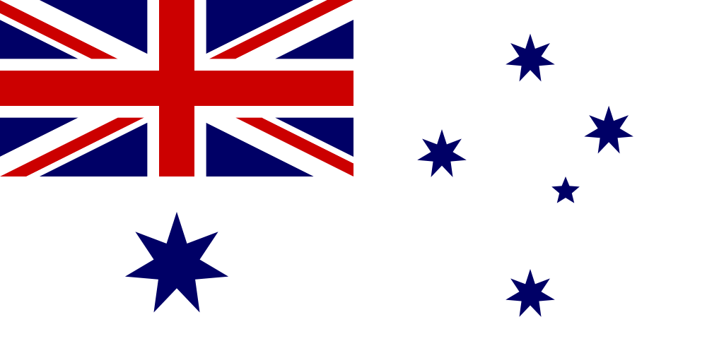 Námořní vlajka + English: Australian White Ensign, used from 1967 on. SVG file of the Royal Australian Navy ensign made by User: David Newton. + pochází z Wikimedia Commons, kde má status – This image is of Australian origin and is now in the public domain because its term of copyright has expired. According to the Australian Copyright Council (ACC), ACC Information Sheet G023v16 (Duration of copyright) (Feb 2012).