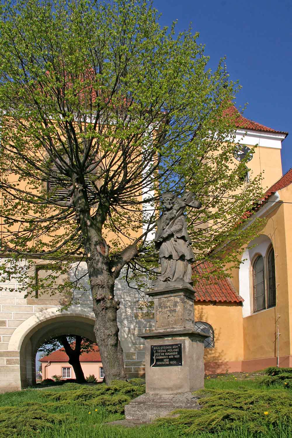 - English: Statue of St Jon Nepomucene nex to St Wenceslaus church in Nehvizdy, Prague-East District, Czech Republic