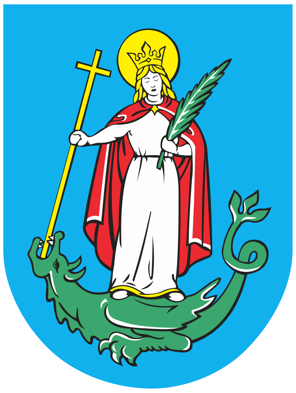 Oficiální znak polského města + + pochází z Wikimedia Commons, kde má status – Na základě § 4, odst. 1 a 2 polského zákona o právu autorském a právech souvisejících: „nejsou předmětem práva autorského normativní akty, jejich návrhy, úřední dokumenty, materiály, znaky a symboly“. Proto je tento soubor volné dílo (Public domain).
