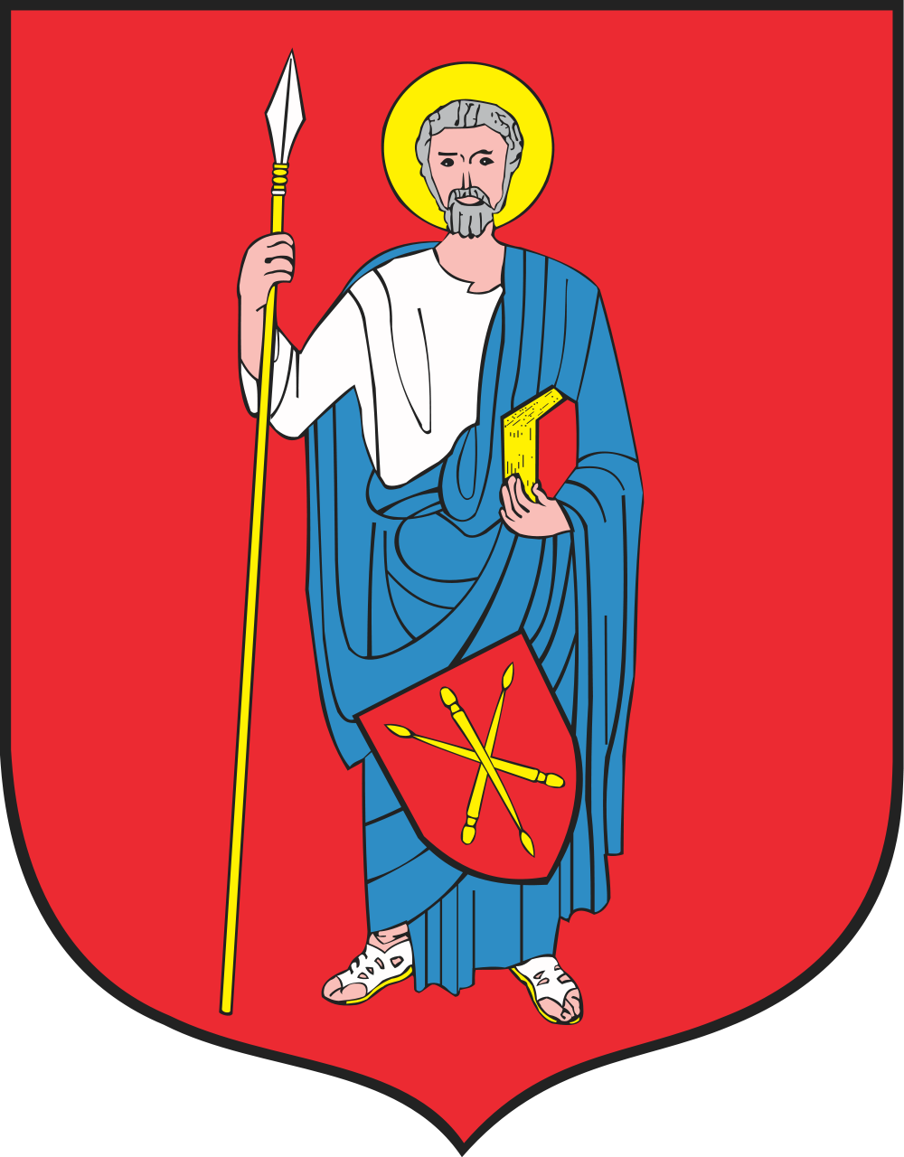 Oficiální znak polského města + + pochází z Wikimedia Commons, kde má status – Na základě § 4, odst. 1 a 2 polského zákona o právu autorském a právech souvisejících: „nejsou předmětem práva autorského normativní akty, jejich návrhy, úřední dokumenty, materiály, znaky a symboly“. Proto je tento soubor volné dílo (Public domain).