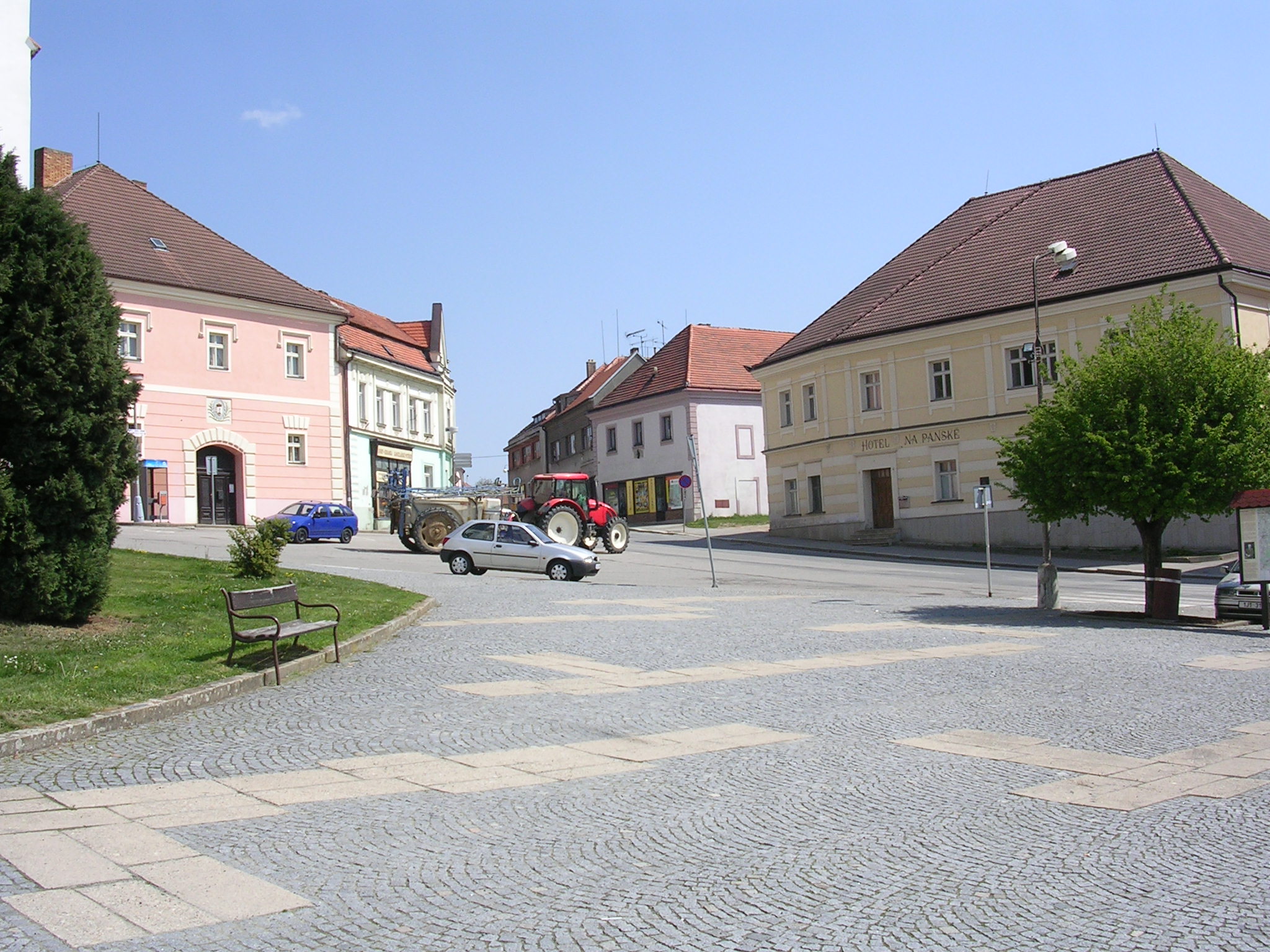 - Čeština: Pacov, okres Pelhřimov. Náměstí Svobody, severovýchodní část náměstí a Myslíkova ulice. Restaurace Na Panské je kulturní památkou.