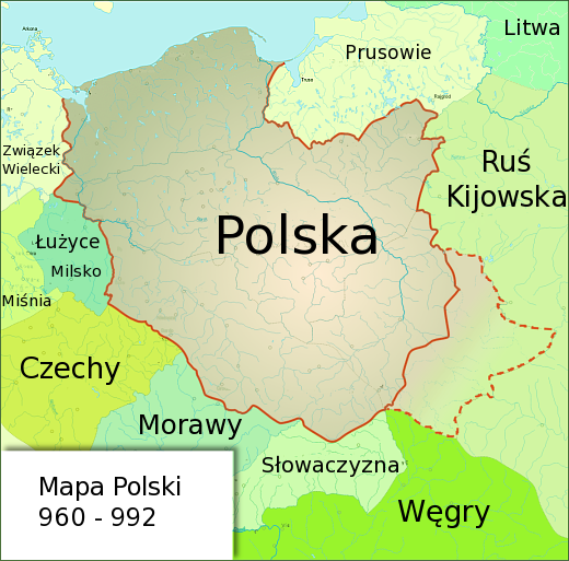 Mapa + Description: Mapa Polski w latach 960 – 992