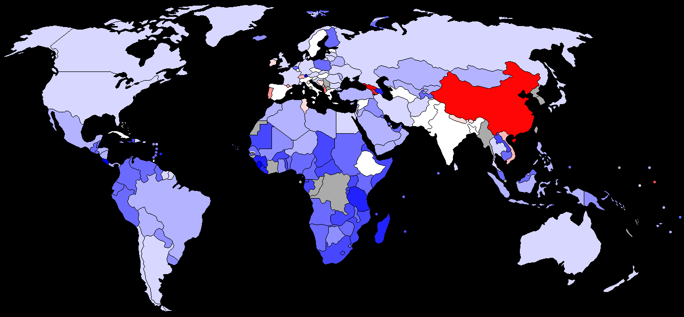 Mapa + English: Sex ratio of population aged below 15 years per country (2006 CIA World Factbook)