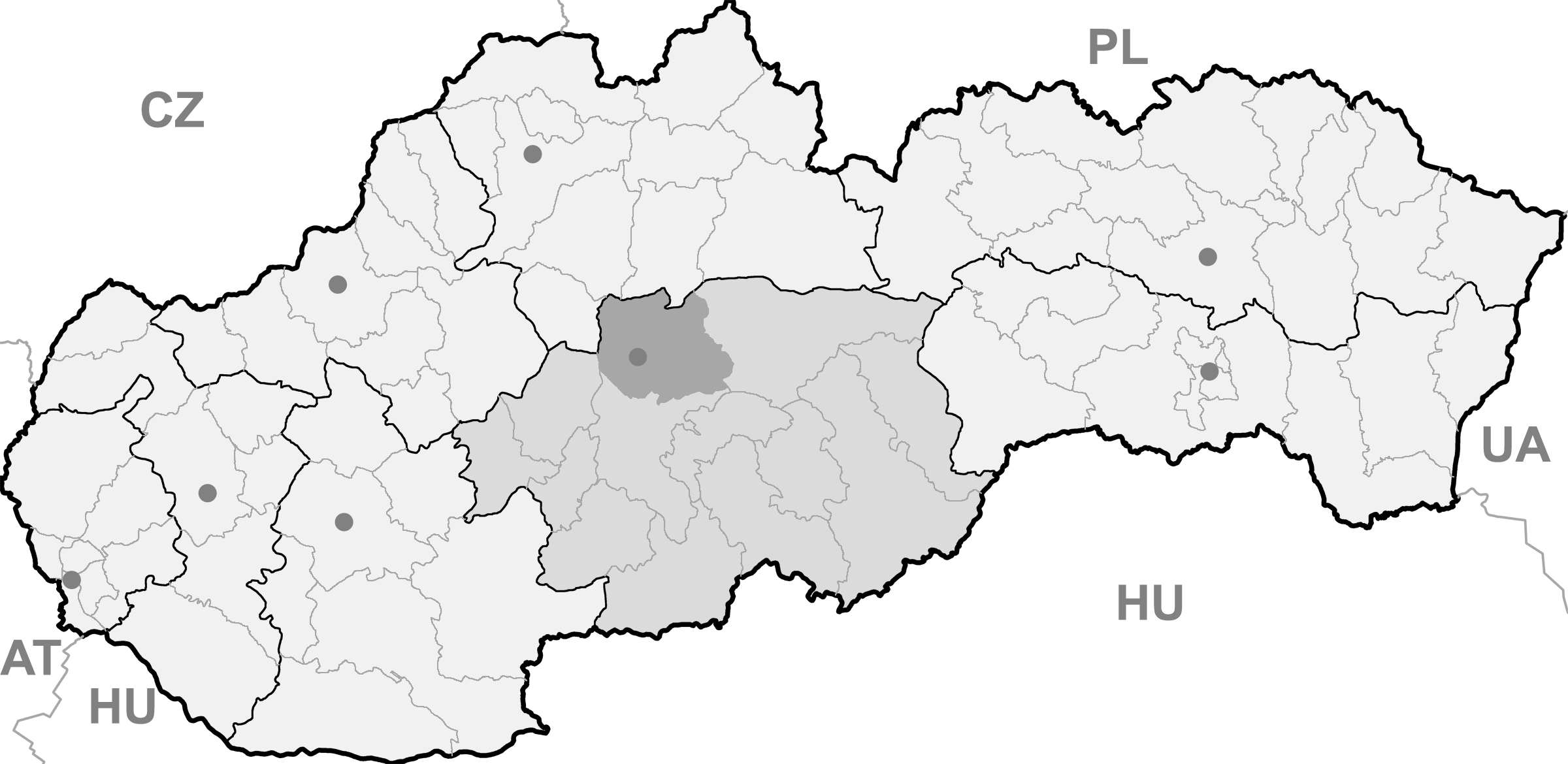 Mapa + English: Map of Slovakia, Banská Bystrica district and Banská Bystrica region highlighted