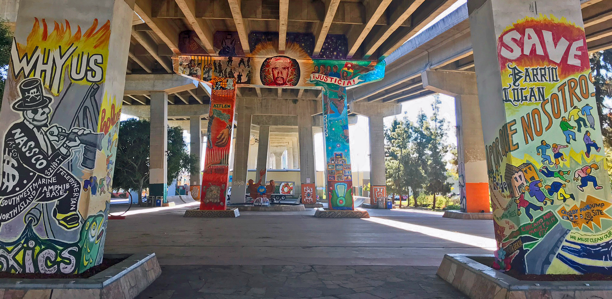 - Some of the artwork on the pylons of the Coronado Bay Bridge in Chicano Park in San Diego, California