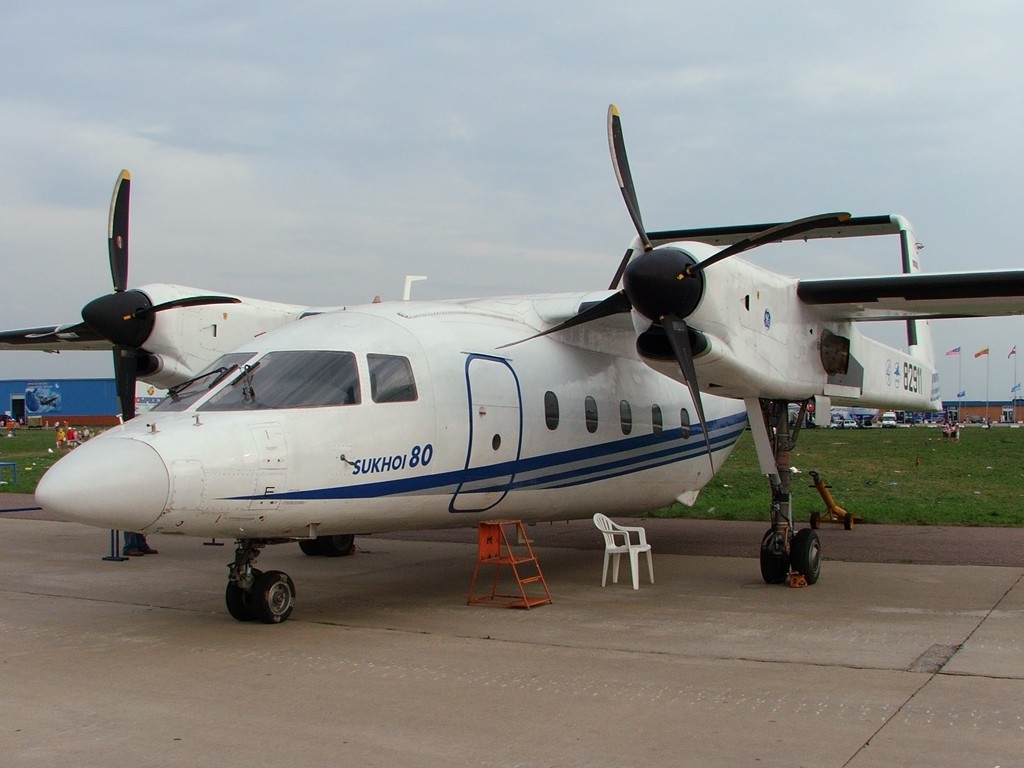 - English: Sukhoi Su-80GP transport aircraft at MAKS-2007 airshow.