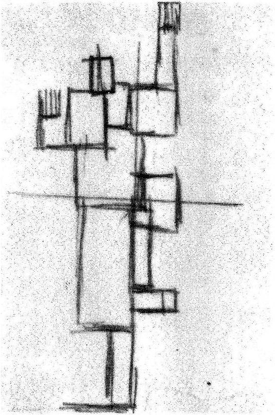 Fotografie + English: Theo van Doesburg. Study for Rhythm of a Russian Dance. 1917-1918 (?). Pencil and ink on paper. 13.5 × 10.5 cm. New York, Museum of Modern Art (inv.nr. 26.69-5).
