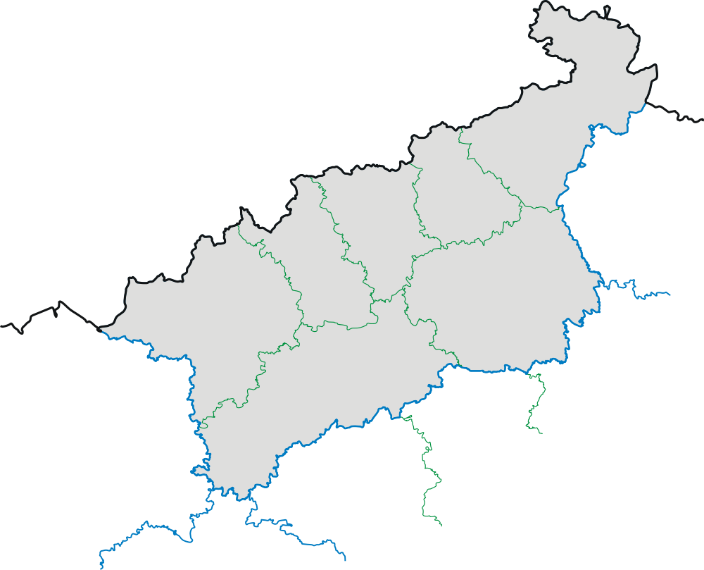 Mapka + Česky: Mapa Ústeckého kraje s okresy. Bez popisků. (2006-02-25) + pochází z Wikimedia Commons, kde má status – Creative Commons Attribution-Share Alike 3.0 Unported (autor: Miraceti from cs).