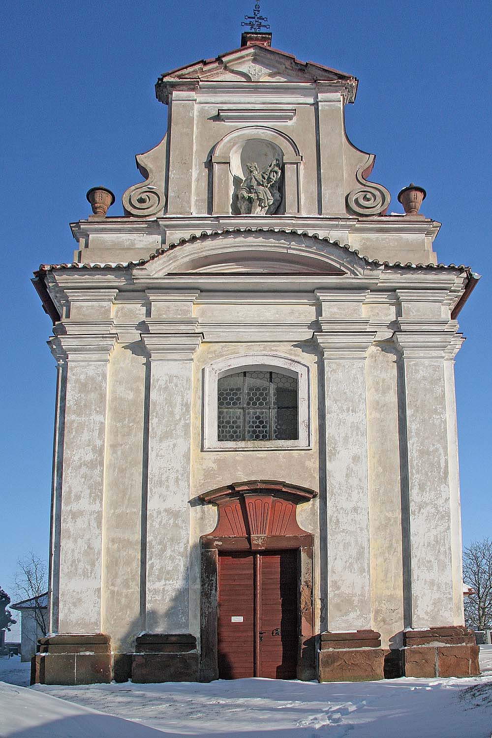 Fotografie + Česky: Průčelí barokního kostela Svatého Václava ve Vrbčanech. district Kolín