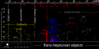 • Objekty z Kuiperova pásu (zkratka KBO z anglického Kuiper Belt Objects) jsou objekty ve vzdálenostech 30 (v blízkosti dráhy Neptunu) až 50 AU; dále se dělí na: