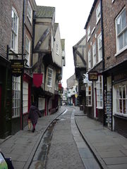 - Úzkou středověkou uličku zvanou The Shambles (Masné krámy) lemují obchody a čajovny, původně však všechny z nich byly řeznickými krámy. Při bližším ohledání jsou patrny četné dosud dochované háky k zavěšování masa. Stojí zde i rodný dům mučednice a světice Margaret Clitherow, dnes přeměněný na její svatyni. V centru Yorku je mnoho dalších úzkých uliček, ale žádná z nich nemá neopakovatelné kouzlo Shambles. S okolními ulicemi je propojena řadou pěších průchodů (snickelways).