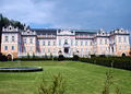 Patrová hlavní budova má mansardovou střechu a bohatě zdobenou přední fasádu. V rámci rekonstrukce na přelomu 20. století byla obnovena její bohatá reliéfní štuková a kamenná sochařská výzdoba. Z obou konců průčelí vystupují dvakrát odstupňovaná boční křídla (rizality). Mezi nimi probíhá terasa s členitou balustrádou, jež je uprostřed otevřena širokou vstupní rampou. Hlavní portál je umístěn ve středním rizalitu; nad ním je balkón na toskánských sloupech.