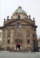 Příklad použití konkávní křivky v architektuře – nároží kostela svatého Františka Serafinského v Praze jsou konkávně probrány