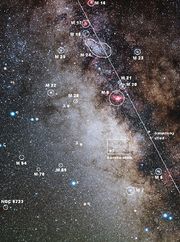Velký počet kulových hvězdokup v souhvězdí lze přičítat tomu, že kulové hvězdokupy se seskupují kolem galaktického jádra. Pozoruhodná je planetární mlhovina NGC 6537 (11,6 mag), známá jako Červený pavouk.