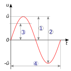 - \(U_{ef} = U_{max} \sqrt{\frac{1}{\pi}\int_{0}^{\pi} \sin^2(t)\, \mathrm{d}t} = \frac {U_{max}} {\sqrt{2}}\)