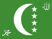 6. července 1975 získaly Komory nezávislost na Francii. Do roku 1992 se užívala zelená vlajka s bílým půlměsícem a čtyřmi pěticípými hvězdami šikmo svisle pod sebou.