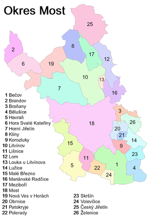 Děčín • Chomutov • Litoměřice • Louny • Most • Teplice • Ústí nad Labem |
