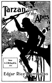 - Tarzan of the Apes (1912 časopisecky v "pulp časopise" All-Story Magazine, 1914 knižně), česky jako Tarzan, syn divočiny nebo jako Tarzan z rodu Opů. Üvodní svazek cyklu, ve kterém se velká africká pralesní opice ujme po tragické smrti jeho rodičů nemluvněte v kolébce a dá mu jméno Tarzan (Bílá kůže) . Chlapec se brzy díky své síle a důvtipu stane nejmocnějším tvorem džungle, jako dosplělý mladý muž zjistí, že je potomkem anglického lorda Greystoka, vrátí se do civilzace a jeho vzrůstající cit k mladé Američance Jane Porterové jej změní v gentlemana.